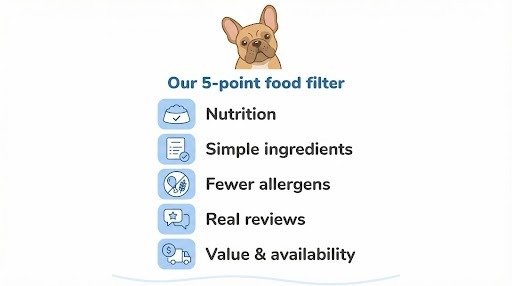 Choosing dog food is personal, but it shouldn’t feel like guesswork. We began with more than forty limited-ingredient recipes, then ran each one through a five-point filter that mirrors how veterinary nutritionists grade a diet.